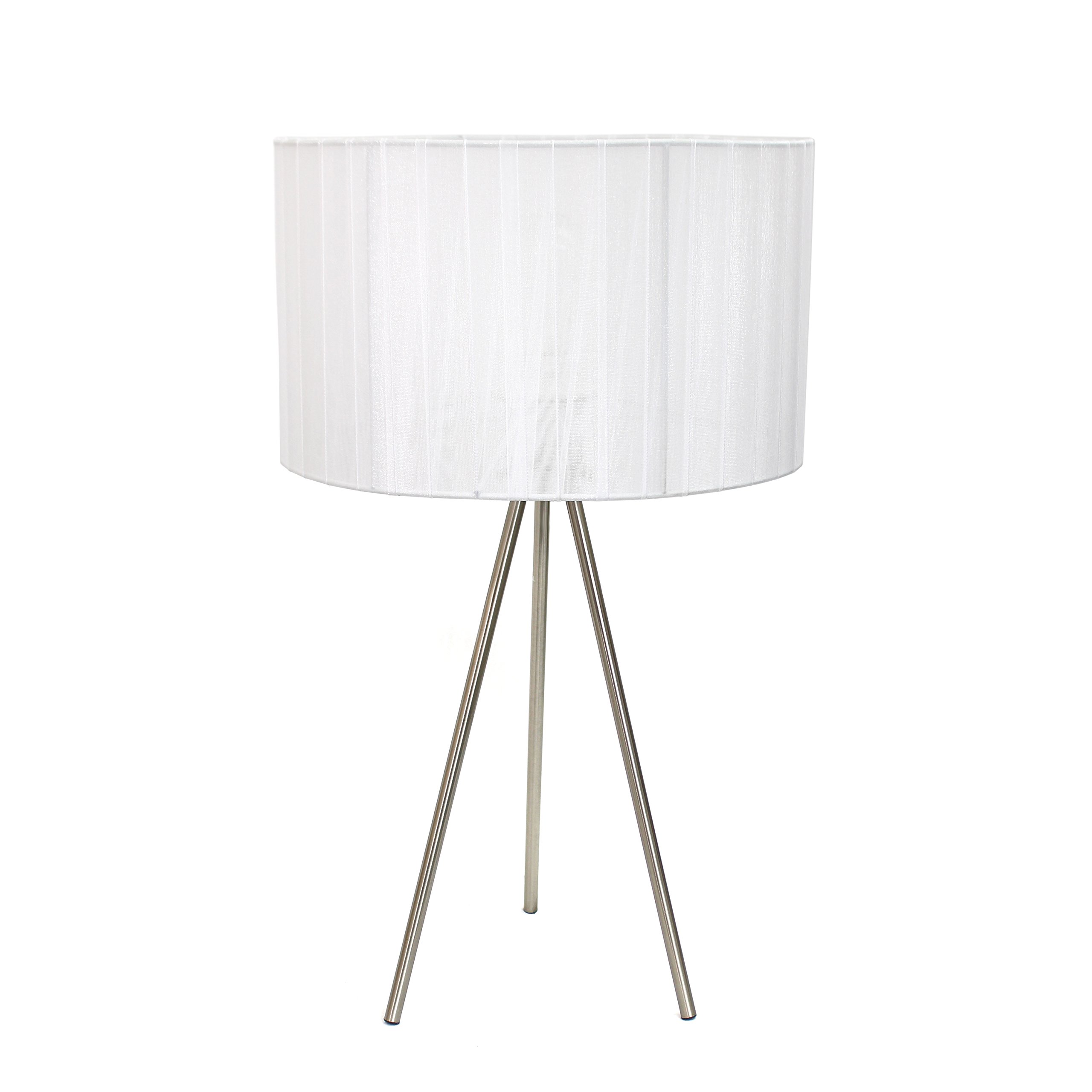 Simple Designs LT2006-WHT Brushed Nickel Tripod Table Lamp with Pleated Silk Sheer Shade, White